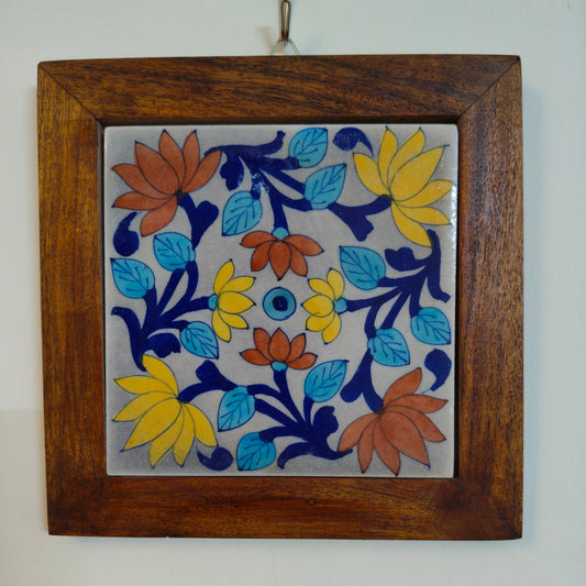 Handcrafted Lotus Wall Tile in Wooden Frame
