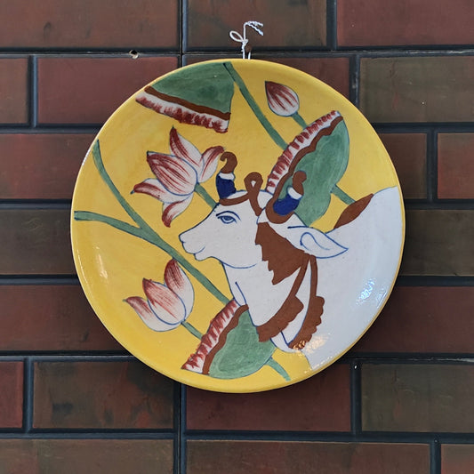 Handcrafted Yellow Kamdhenu Cow Wall Plate